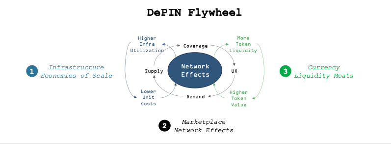 디핀이 성립하는 전제조건은 물리적, 디지털 리소스 네트워크를 제공하는 공급자들에게 1차적으로 인센티브가 명확하기 때문이다. 이에 디핀 프로젝트들은 초기에 서비스 이용자가 많지 않기 때문에 공급자에게 충분한 보상을 주기 위해 토큰 발행량이나 인플레이션을 높게 설정해 공급자들을 최대한 모으고, 해당 인센티브가 최소한의 네트워크 운용비용을 벌충할 만큼이 되어야 합리적인 가설이 성립하게 된다. 이를 바탕으로 최대한 많은 수요자를 확보해서 네트워크 효과를 통해 사용자가 늘고 수익이 증가하면 토큰 가치 상승과 함께 공급자 보상도 자연히 증가하여 자생적인 선순환이 이루어질 수 있도록 만드는게 핵심이다.